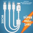 3 Ü 1 Arada Şarj Kablosu 30 Cm 3.1a Hızlı Şarj, Lightning + Micro Usb + Type-c
