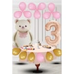 3 Yaş Retro Folyo Krem Ayıcık Pembe Gold Balon Rose Gold Rakam Doğum Günü Süsleme KREM
