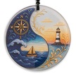 30 Cm Çap - Deniz Feneri, Pusula, Tekne Füzyon Cam Duvar Süsü