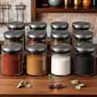 300 Ml 70 Mm X 100 Mm 12 Lı Borosilikat Cam Baharatlık Seti-sızdırmaz Sılıkonlu Metal Kapak Beyaz
