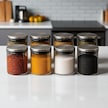 300 Ml 70 Mm X 100 Mm 8 Lı Borosilikat Cam Baharatlık Seti-sızdırmaz Sılıkonlu Metal Kapak Beyaz