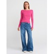 Dilvin 31332 Kayık Yaka Uzun Kollu Top- Fuşya FUŞYA