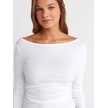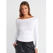 31401 Büzgülü Kayık Yaka Top-beyaz-870 Beyaz