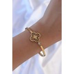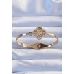 316l Çelik Altın Renk Zirkon Taşlı Simli Yonca Kelepçe