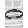 Erkek Çelik Detay Yeşil Renk Deri Bileklik Gümüş