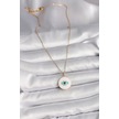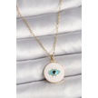 316l Çelik Gold Renk Zincir Beyaz Mineli Turkuaz Göz İşleme Model Kadın Kolye Çok Renkli