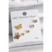 316l Çelik Gold Renk Zirkon Taşlı Kelebek Figür Kadın Küpe Seti