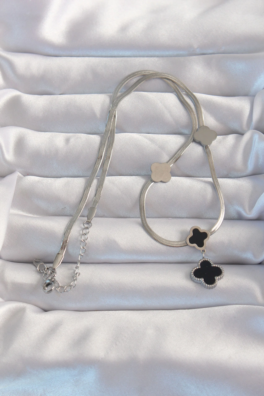 316l Çelik Gümüş Renk İtalyan Zincirli Mineli Yonca Kolye Renkli