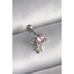 316l Çelik Gümüş Renk Pembe Zirkon Taşlı Sallantı Yıldız Detay Tr