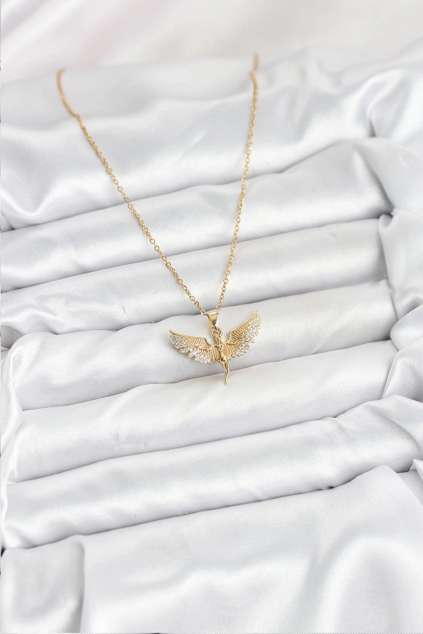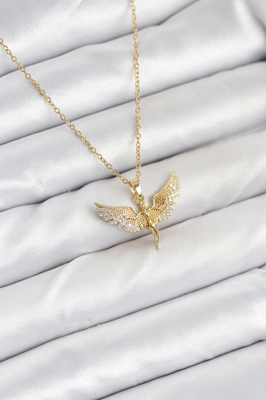 316l Çelik Zincir Gold Renk Melek Model Kadın Kolye Çok Renkli