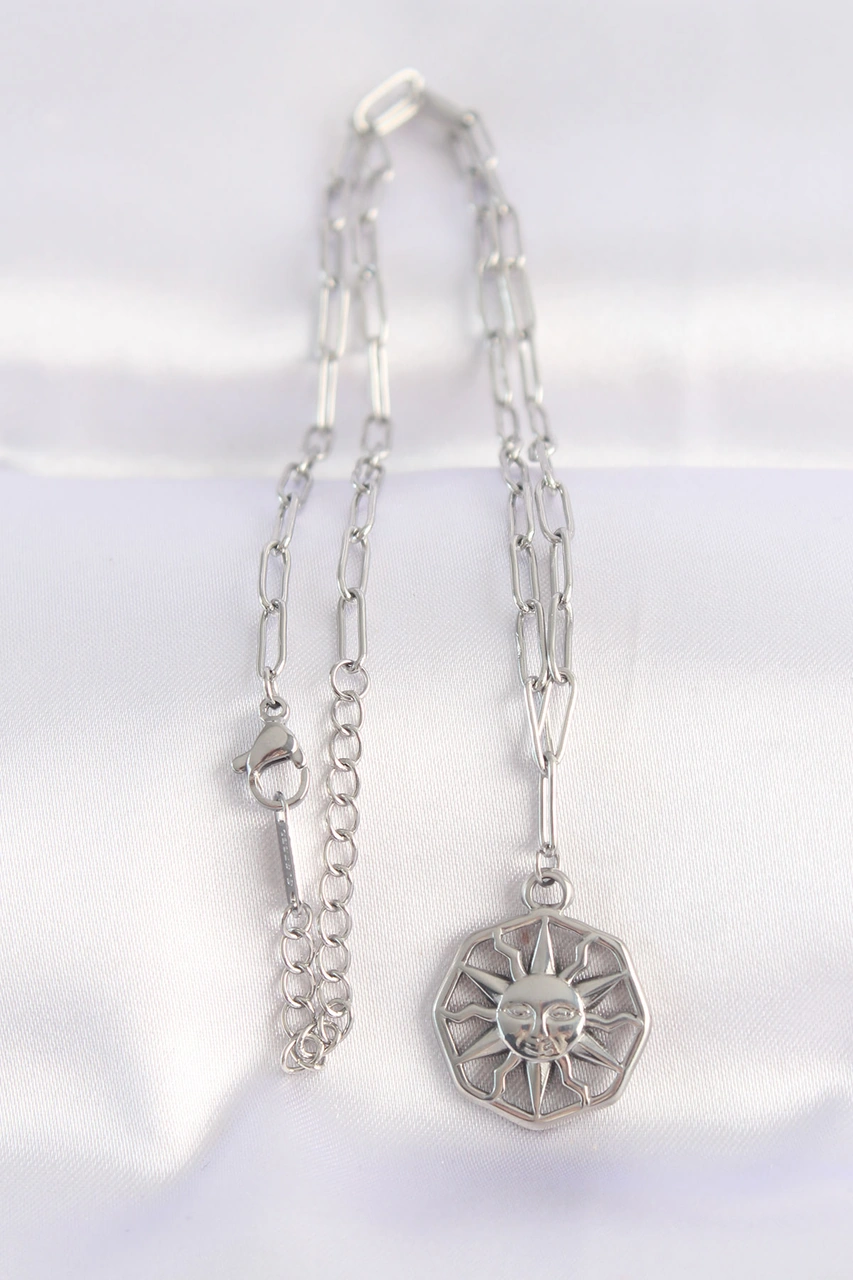 316l Çelik Zincir Gümüş Renk Güneş Kolye Renkli