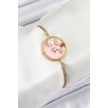 316l Çelik Zincir Pembe Mineli Sanatsal Portre İnci Detaylı Çiçek Model Gold Renk Kadın Bileklik Çok Renkli