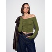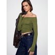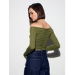 32089 Omuzları Açık Büzgülü Top-açık Haki Açık Haki