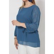 3243 Kolu Taş Baskılı Şık Bluz İndigo Indigo