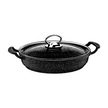 3286 - 4 Parça, Biogranit, Döküm, Isıya Dayanıklı Cam Kapaklı, 18 - 22 Cm Sahan, Seti, Siyah Siyah