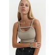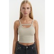 3396 - Noam Soft Haki Ön Detay Fitilli Crop Haki
