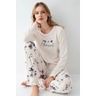 3411-s Kadın Uzun Kol Pijama Takım Krem