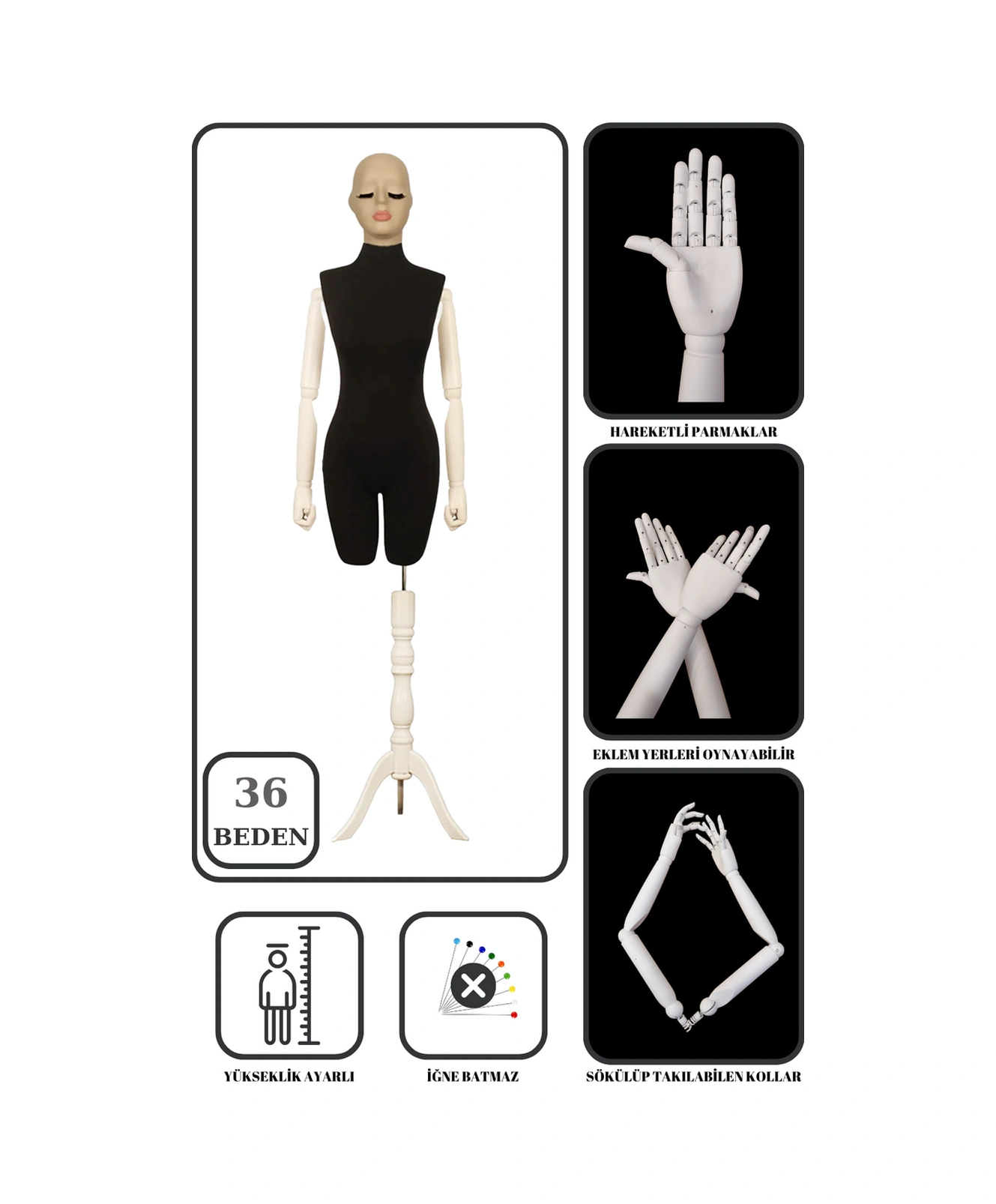 38 Beden Ahşap Kollu Pantolon Giyebilen Terzi Mankeni Vitrin Mankeni 0021
