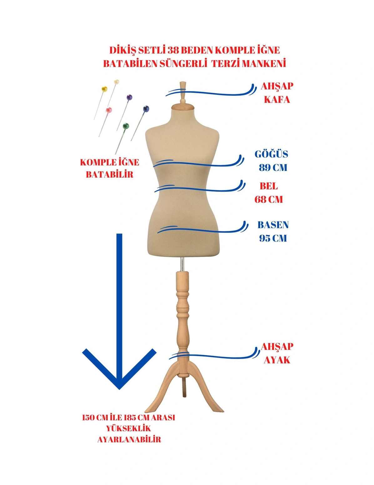 38 Beden Full Iğne Batabilen Terzi Mankeni Prova Mankeni Vitrin Mankeni Po-01 3254