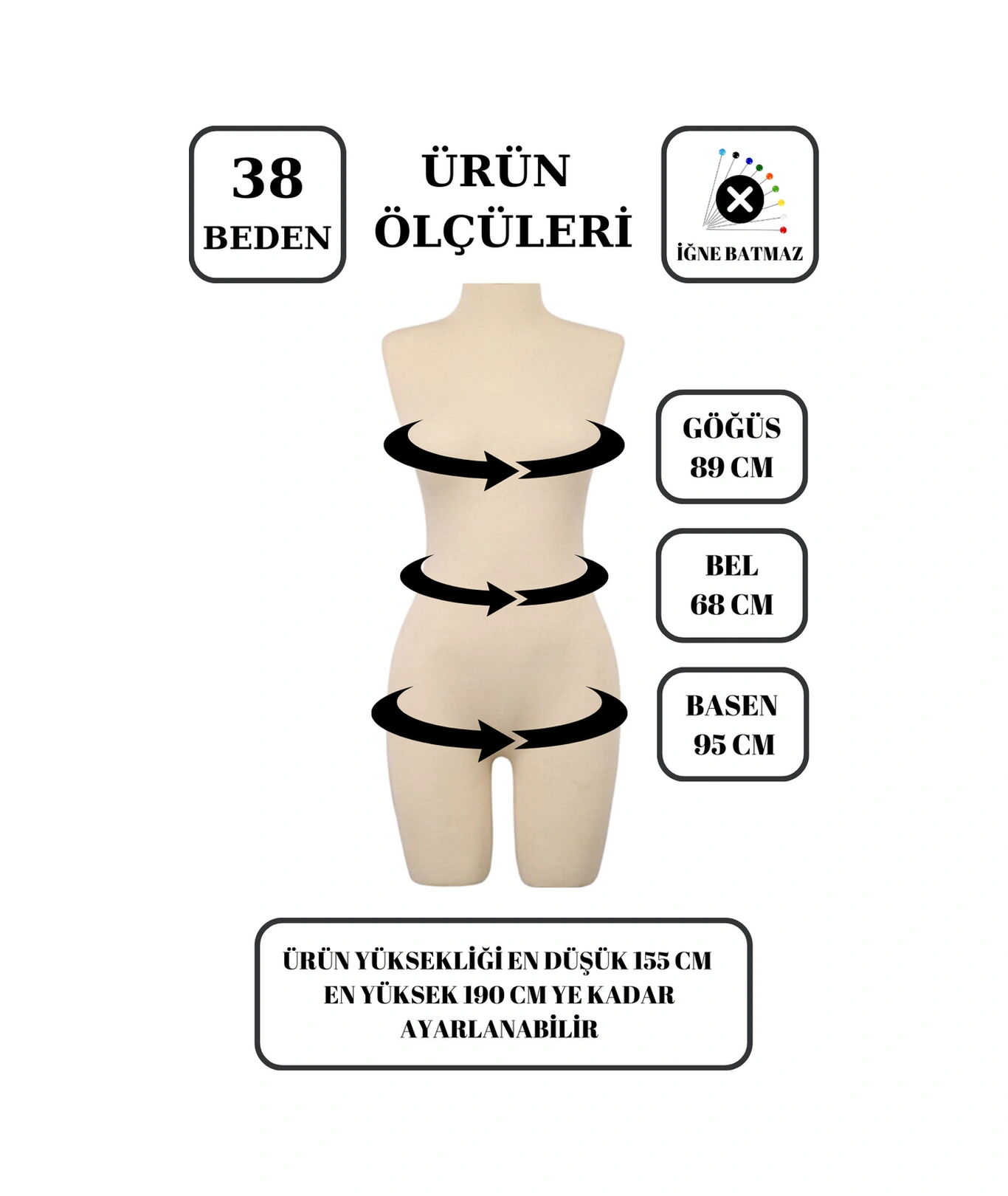 38 Beden Yüksek Kalite Tel Kafalı Pantolon Giyebilen Kadın Terzi Mankeni 4769