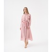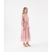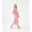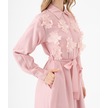 3d Çiçek Aplikeli Kuşaklı Gömlek Elbise Pudra