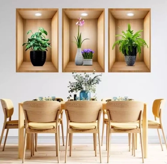 3d Çiçek Vazo Duvar Sticker 3 Lü Set Kahverengi Fon 4741 Akçaağaç