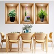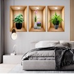 3d Çiçek Vazo Duvar Sticker 3 Lü Set Kahverengi Fon 5060 Çok Renkli