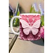 3d Görünümlü Pembe Çiçek Ve Kelebekler No:16 3d Tasarım Baskılı Kupa Bardak Mug Pembe