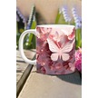 3d Görünümlü Pembe Çiçek Ve Kelebekler No:18 3d Tasarım Baskılı Kupa Bardak Mug Açık Mavi