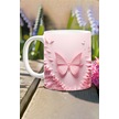 3d Görünümlü Pembe Çiçek Ve Kelebekler No:19 3d Tasarım Baskılı Kupa Bardak Mug Açık Zümrüt Yeşili