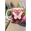 3d Görünümlü Pembe Çiçek Ve Kelebekler No:21 3d Tasarım Baskılı Kupa Bardak Mug Altın