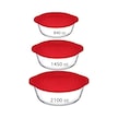 3'lü Borcam Kırmızı Kapaklı Saklama Kabı Seti 2100cc 1450cc 840cc Kapaklı Tencere Çeyiz Seti