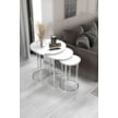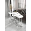3'lü C Zigon Sehpa Gümüş Ayak Beyaz Ayna