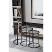 3'lü C Zigon Sehpa Siyah Ayak Şeffaf Füme Cam