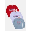 3'lü Cat Meow-hug And Kisses-cute Cat Baskılı Kız Çocuk Uzun Kol Mint Yeşil-gri-kırmızı Sweatshirt Çok Renkli