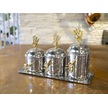 3'lü Çiçekli Baharatlık Takımı Gümüş
