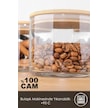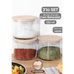 3'lü Etiketli Bambu Kapaklı Cam Baharatlık Seti - Baharat Saklama Kabı Vakum Kapaklı Kavanoz 535 Ml ŞEffaf
