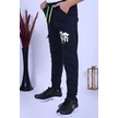 Fermuar Cep Detaylı, Yazı Baskılı Erkek Çocuk Eşofman Altı Siyah