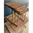 3'lü Kare Zigon Sehpa Seti Gold Ayak Ahşap Üstlük Açık Ceviz