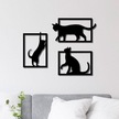 3'lü Kedi Temalı Ahşap Duvar Dekorasyonu Seti Ahşap Tablo 60x50 Cm