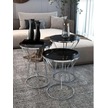3'lü Kum Saati Zigon Sehpa Seti Gümüş Ayak Siyah Cam Siyah