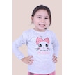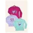 3'lü Love-cat Meow-good Things Baskılı Kız Çocuk Uzun Kol Fuşya-gri-yeşil Sweatshirt Çok Renkli