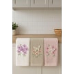 3'lü Lüks %100 Pamuklu Mutfak Havlusu Seti 3d Kelebek Aplikeli 30x50 Cm Çok Renkli