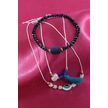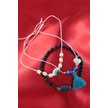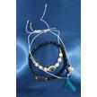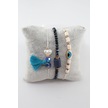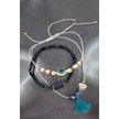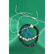 3lü Püsküllü İncili Nazar Boncuklu Asansörlü Bileklik. Lastikli Boncuklu Bileklik. Kadın İp Bileklik Çok Renkli
