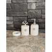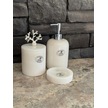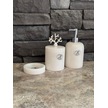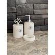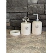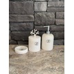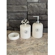 3'lü Set Beyaz Mermer Gümüş Aksesuarlı Sıvı Sabunluk, Makyaj Pamukluk, Katı Sabunluk Beyaz