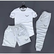 3'lü Slimfit Unisex Tshirt-şort-eşofman Kombin Gri Kanat Baskılı Gri - Beyaz
