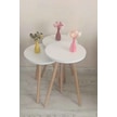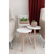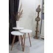 3'lü Zigon Sehpa Seti Saksılık Ve Çiçeklik Standı, Dekoratif Yan Sehpa Ahşap Ayaklı 33 Cm Çap - Beyaz Beyaz
