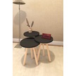 3'lü Zigon Sehpa Seti Saksılık Ve Çiçeklik Standı, Dekoratif Yan Sehpa Ahşap Ayaklı 33 Cm Çap - Siyah Siyah