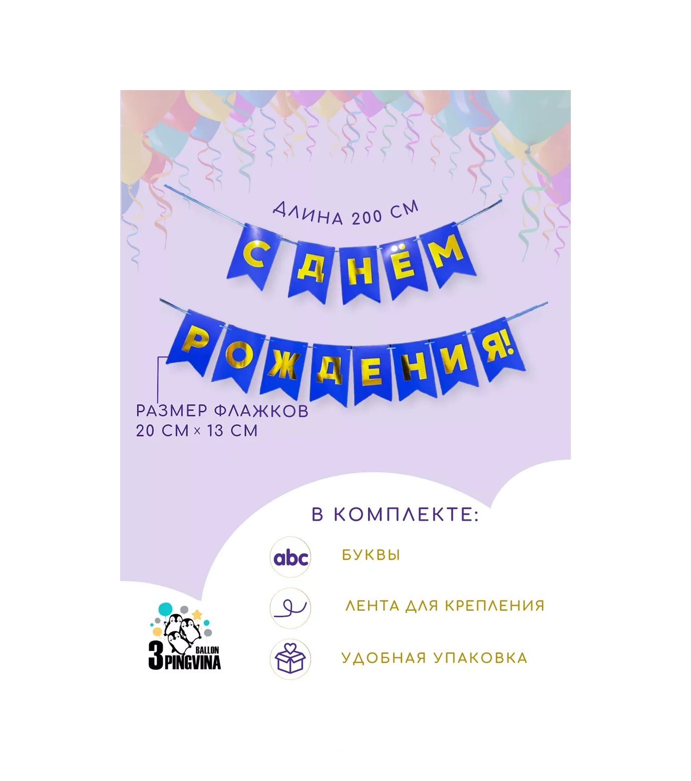 3pingvina Doğum Günü İçin Süsleme - Işık Zinciri - Bayraklar 146620768 Mavi