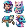 4 Adet 10x10 Cm Sticker Çocuk Etiket Seti V2 Çok Renkli
